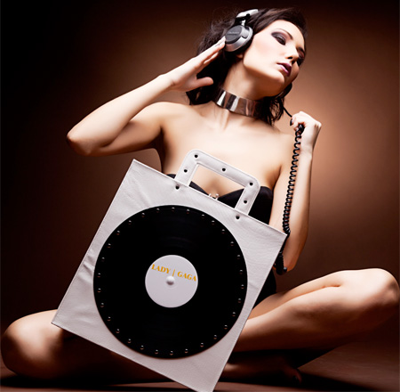 Geanta stilata cu disc vinil integrat. Perfect pentru iubitorii de muzica.