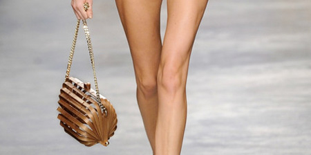 Poseta tip clutch in forma de acordeon din lemn creata de Stella McCartney.