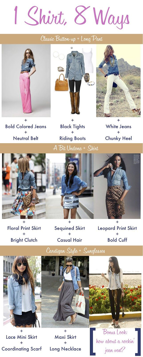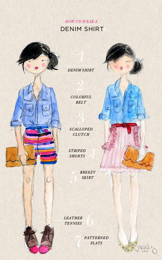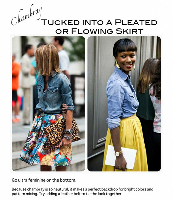 8. Copiaza acest infographic dragut, si asociaza camasa Chambray cu pantaloni scurti cu dungi sau o fusta.