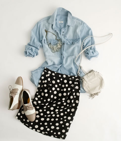17. Echilibreaza feminitatea unei fuste plisate purtand-o cu o camasa chambray.