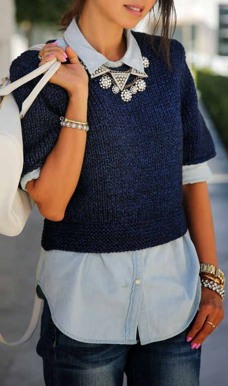 13. Poarta camasa din denim pe sub puloverul tau preferat.