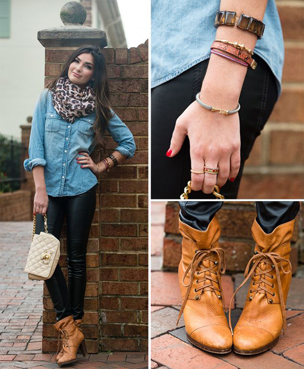 18. Poart-o peste pantaloni de piele pentru o combinatie placuta de materiale. De asemenea, o esarfa leopard arata uimitor la o camasa din denim.
