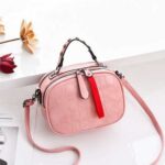 Geantă damă roșie cu design geometric și breloc puf – eleganță modernă