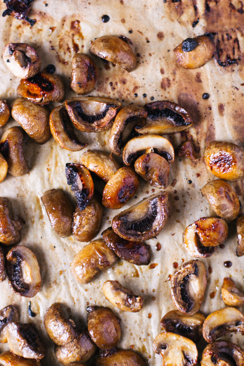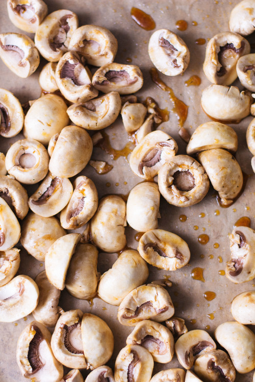 Am vrut o textura crocanta si consistenta si multa savoare, asa ca am optat sa prajesc ciupercile. Nu am gustat niciodata o leguma prajita care sa nu-mi placa, si ador aroma caramelizata pe care caldura mare a cuptorului o ofera. Aruncand ciupercile in glazura si apoi prajindu-le la o temperatura ridicata, ele absorb toata aroma glazurii si devin consistente si crocante in cuptor.