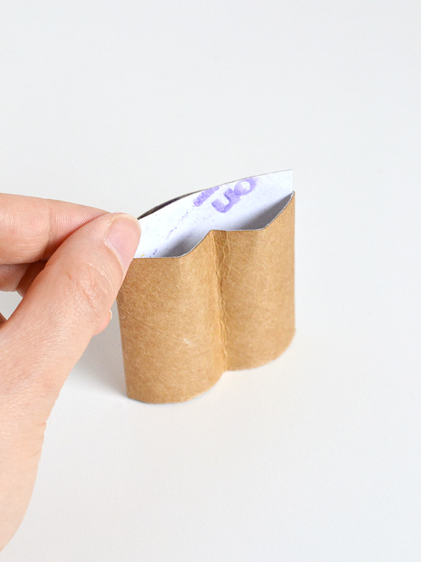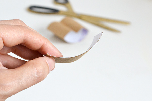 Pasul 3: taiati o bucata din a doua jumatate de rola si puneti-o in prima jumatate pentru a forma cele doua buze. Dupa ce ati introdus-o lipiti-o cum trebuie pentru a nu se dezlipi atunci cand aplicati imprimeul.