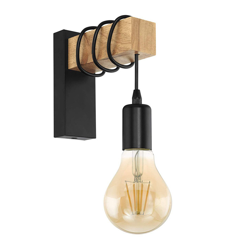 Aplica retro Iron are un design modern, chiar industrial, dat de liniile sale simple, de materialele folosite si de combinatia de culori: negru-wood. Aplica este proiectata pentru bec cu soclu E27 pentru o putere maxima de 60W.