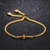 Bratara ajustabila cruciulita placata aur 24K este o bijuterie elegantă și distinctivă, care prezintă un design subtil, dar semnificativ. Această brățară este confecționată din otel inoxidabil , care este apoi placat cu un strat subțire de aur pentru a conferi un aspect lucios și strălucitor.