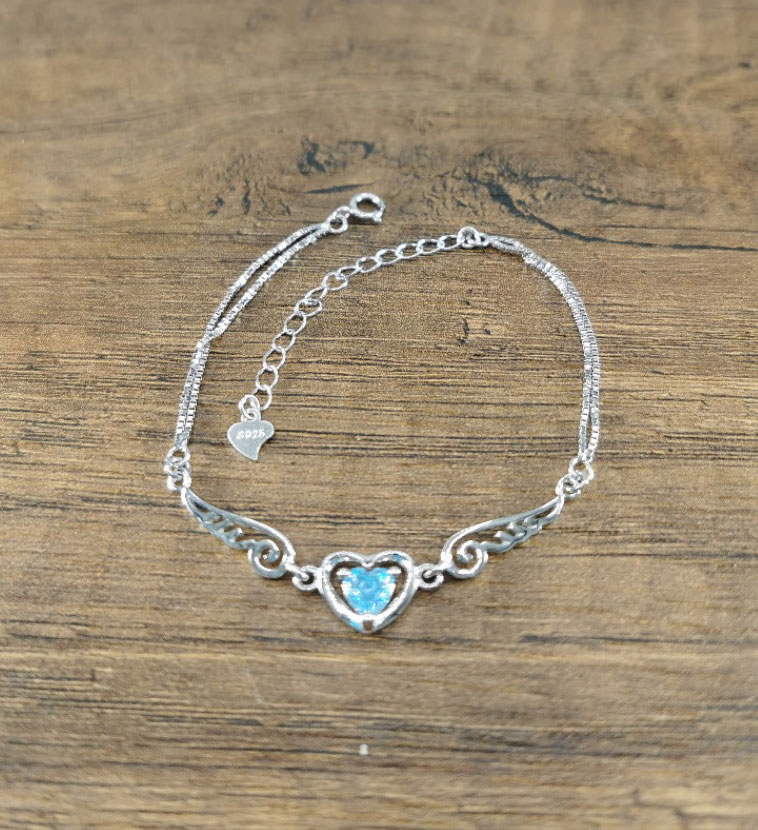 Bratara argint 925 aripa de inger zirconiu albastru este o bijuterie cu adevărat adorabilă și plină de semnificație. Punctul focal al acestei brățări îl reprezintă inimioara din argint cu zirconiu albastru, care adaugă o notă de culoare și strălucire bijuteriei. Această inimioară simbolizează iubirea, pasiunea și emoțiile profunde.