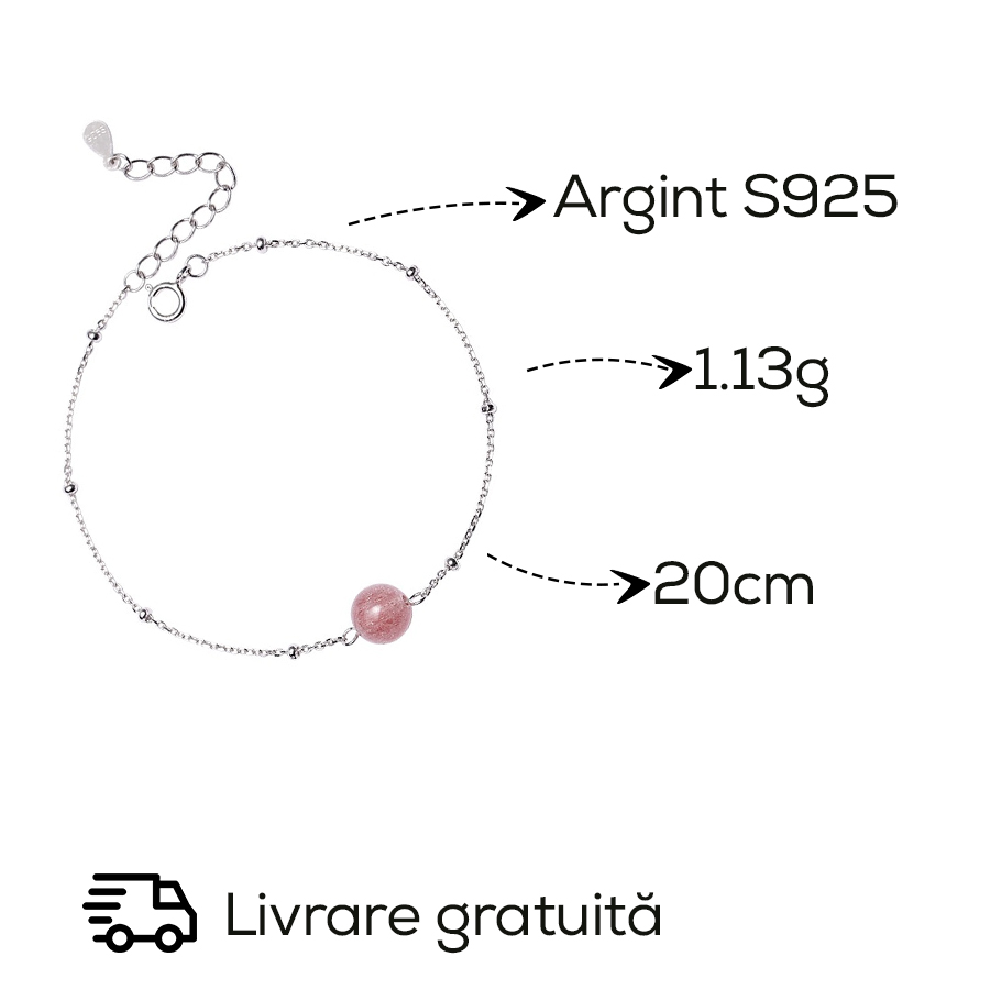 Bratara argint 925 biluta roz este o bijuterie elegantă și subtilă, care adaugă o notă de culoare și strălucire ținutei tale. Biluța roz din mijloc adaugă o notă de culoare delicată și feminină bijuteriei. Rozul poate simboliza afecțiunea, tandrețea și romantismul. În același timp, biluțele din argint conferă bijuteriei un farmec clasic și strălucire.
