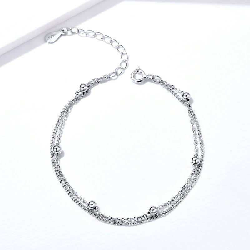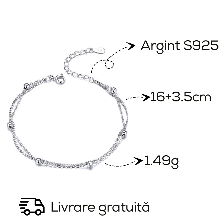 Această brățară cu bilute din argint este o bijuterie clasică care nu se demodează niciodată. Cu simplitatea sa și eleganța, este perfectă pentru a fi purtată zilnic sau pentru a completa o ținută mai sofisticată.