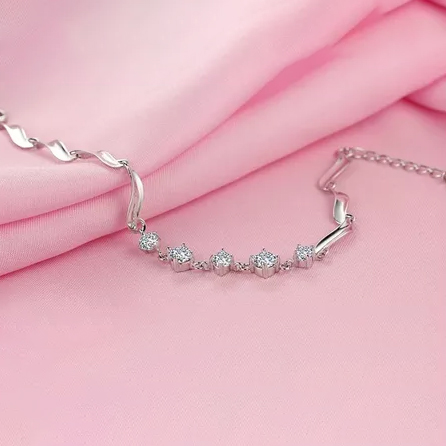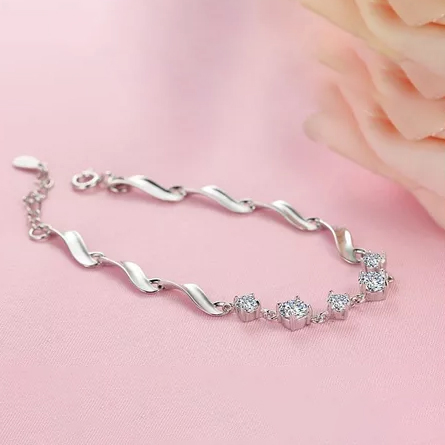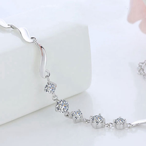 Bratara argint 925 cu cristale zirconiu placata platina este o bijuterie spectaculoasă, ce atrage privirile și emană un farmec aparte. Modelul rasucit al brățării, oferă un aspect rafinat și unic, aducând o notă de eleganță și subtilitate. Designul creează un joc interesant de lumini și umbre, conferind bijuteriei o strălucire subtilă. În mijlocul brățării se află un sir de cinci cristale din zirconiu. Prin strălucirea lor intensă, cristalele din zirconiu adaugă o notă de lux și sofisticare brățării, atrăgând atenția asupra încheieturii mâinii cu fiecare mișcare.