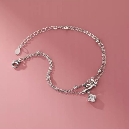 Această brățară din argint cu model dublu nu trebuie sa lipseasca din garderoba dumneavoastra. Cu designul său dublu și simetric, este o bijuterie care emană echilibru și frumusețe, aducând un strop de armonie în viața ta.