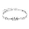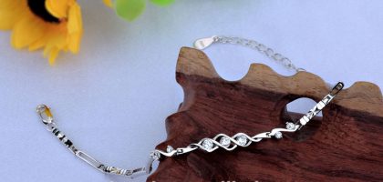 Partea frontală a brățării prezintă forme impletite, îmbinând perfect strălucirea argintului cu strălucirea cristalelor de zirconiu. Cristalele de zirconiu au fost plasate strategic în mijlocul formelor impletite, adăugând o notă subtilă de sclipire și strălucire. Acest detaliu subliniază designul complex al brățării și atrage privirile către centrul său captivant.