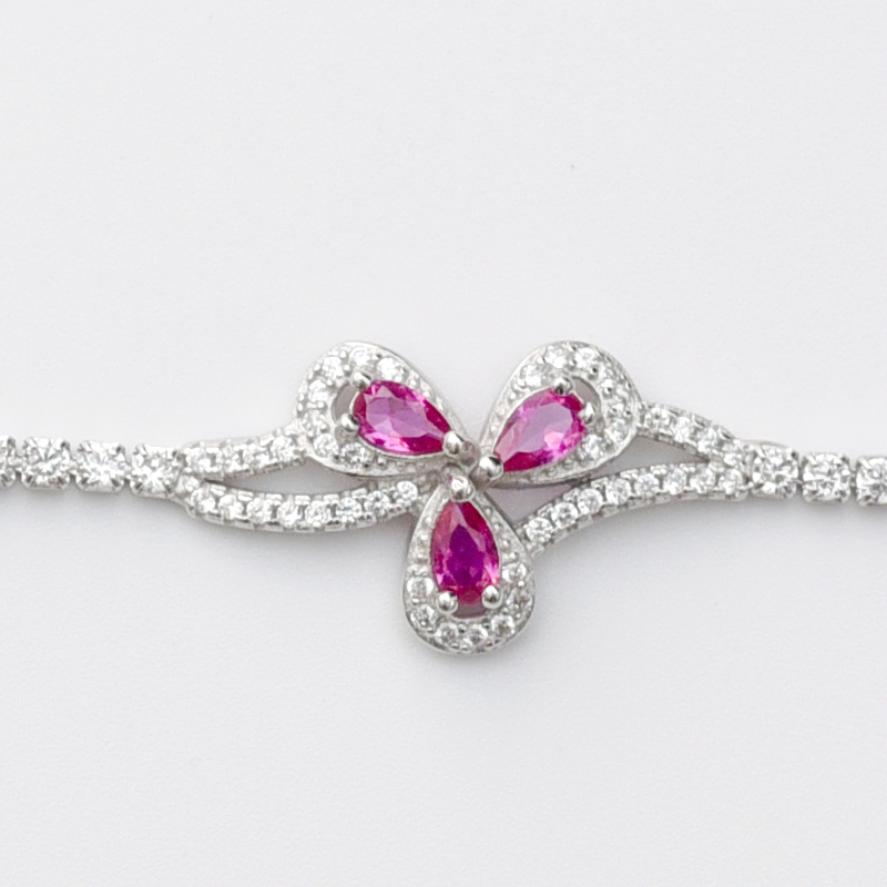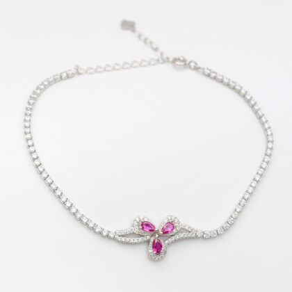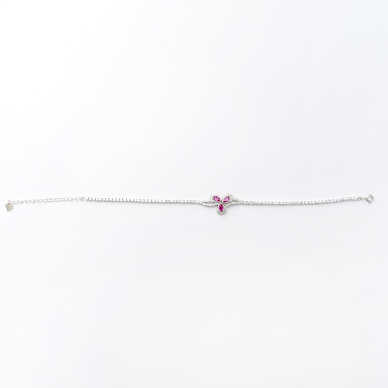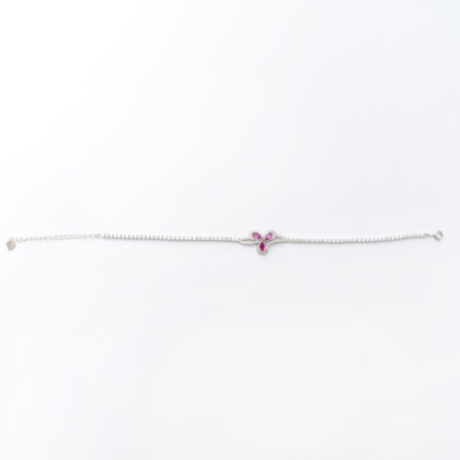 Bratara din argint 925 cu floricica zirconiu roz este un accesoriu special, perfect pentru a fi purtat zilnic sau pentru a completa o tinuta eleganta. Aceasta are o forma delicata, cu o floare frumoasa in centrul bratarii. Floarea este decorata cu zirconiu roz, care straluceste frumos in lumina si ii confera o eleganta aparte.