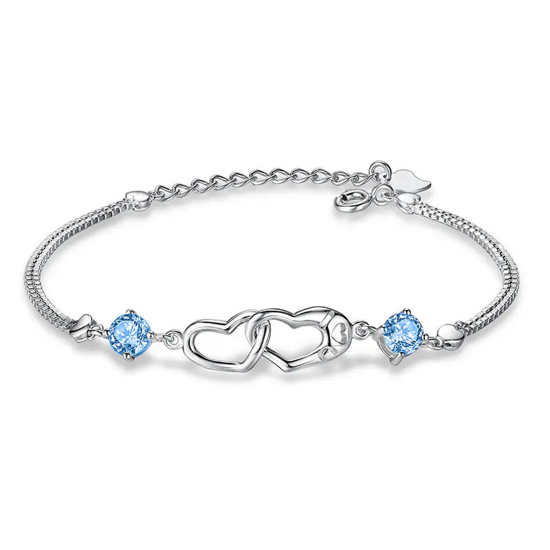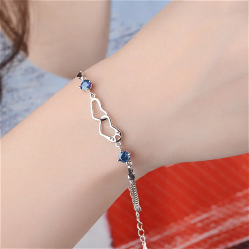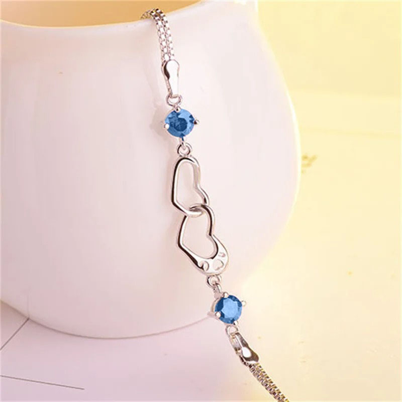 Bratara argint 925 inimioara dubla zirconiu albastru