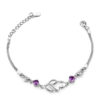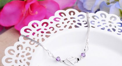 Această brățară poate fi purtată cu mândrie în diverse ocazii, de la evenimente speciale la momente de zi cu zi, adăugând o notă de rafinament și romantism fiecărei ținute. Prin designul său inovator și strălucirea cristalelor mov, această bijuterie se evidențiază ca o alegere fermecătoare pentru femeile care apreciază atât frumusețea cât și semnificația profundă a accesoriilor lor.