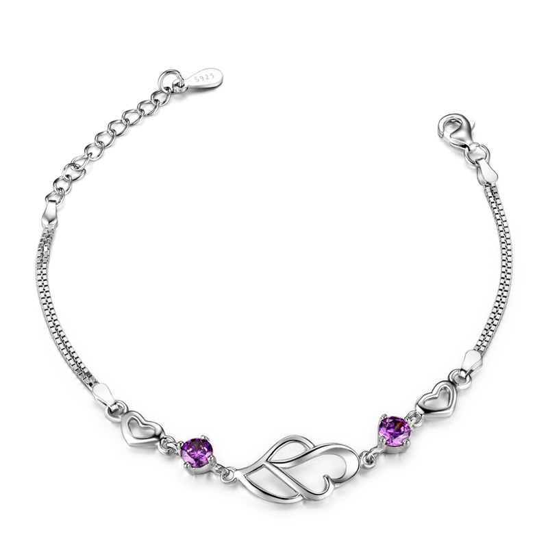 Bratara argint 925 inimioare si zirconiu mov este o bijuterie încântătoare care îmbină simbolismul romantic cu strălucirea subtilă a zirconiului. Această brățară este o expresie a afecțiunii și eleganței, captivând privirile prin designul său inovator și finisajele rafinate. Inimioarele impletite în partea frontală subliniază legăturile puternice dintre persoane și adaugă o notă romantică și tandră accesoriului.