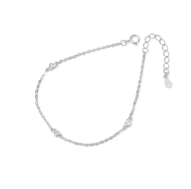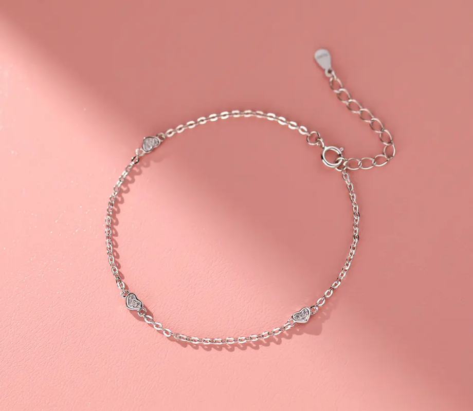 Bratara argint 925 inimioare Tania este o bijuterie delicată și simbolică, perfectă pentru a exprima afecțiunea și legăturile puternice dintre două persoane. Inimioarele ofera o notă de subtilitate și eleganță brățării. Lungimea brățării poate varia pentru a se potrivi diferitelor dimensiuni de încheietură.