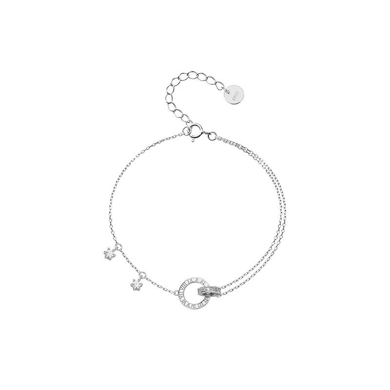 Bratara argint 925 Missa impresionează prin designul său modern și simbolic, fiind decorată cu două cercuri delicate care se unesc armonios. Cele două inele interconectate reprezintă legătura puternică și eternă dintre două persoane sau concepte, fiind un simbol al unității și conexiunii.