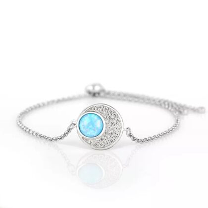 Această brățară din argint cu medalion incrustat cu pietre zirconiu și o piatră opal este o bijuterie care va atrage toate privirile. Cu elementul său misterios și strălucirea sa subtilă, este o alegere perfectă pentru cei care apreciază eleganța și un strop de mister în bijuterii.