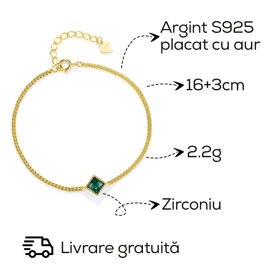10 recenzii pentru Bratara argint 925 placata aur cristal verde