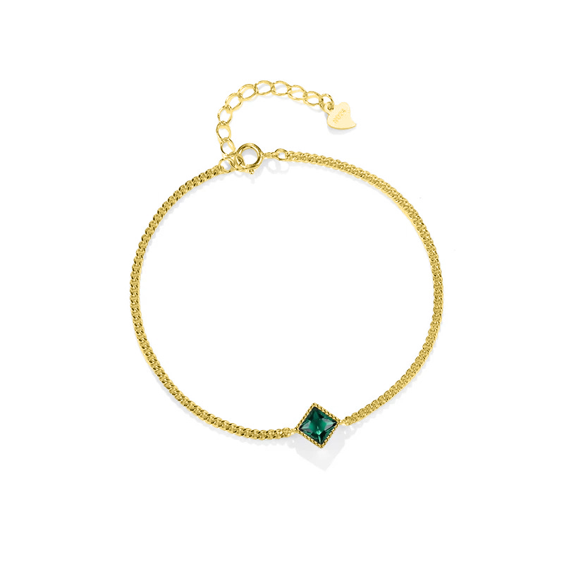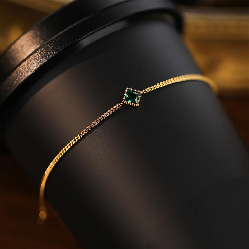 Punctul focal al acestei bijuterii este cristalul verde amplasat cu grijă în mijlocul brățării. Cristalul adaugă o notă de culoare vibrantă și strălucire, conferind un aspect sofisticat întregii piese. Culorile vii ale cristalului verde se pot asorta ușor cu diverse ținute, aducând un strop de prospetime și rafinament. Această brățară reprezintă nu doar o bijuterie, ci și o expresie a stilului și personalității tale, adăugând un farmec aparte oricărei ținute. Este potrivită pentru ocazii speciale sau pentru a completa cu eleganță aspectul de zi cu zi.