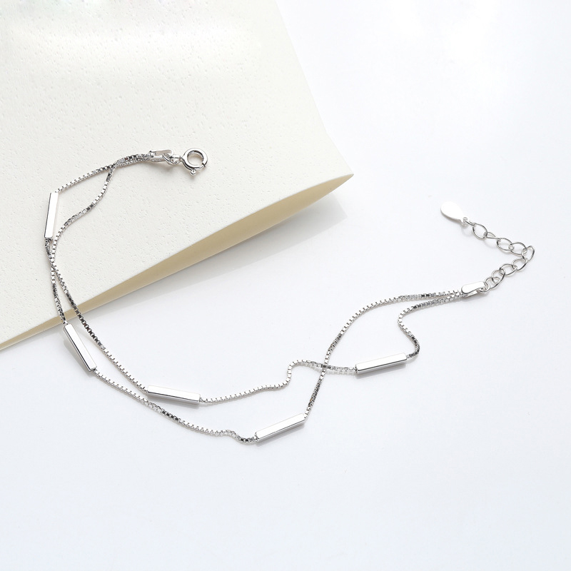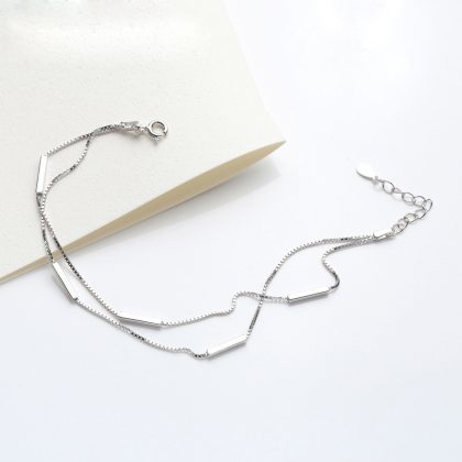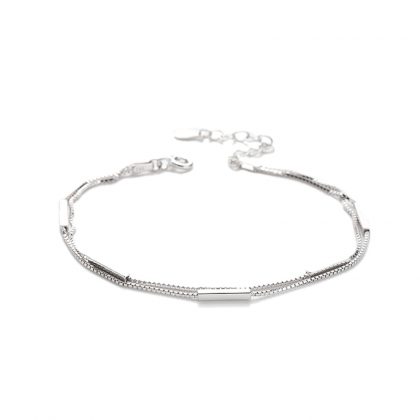 Designul dublu al brățării este captivant. Aceasta constă din două lantisoare de argint 925 care se unesc printr-un sistem de închidere sigur. Această construcție dublă adaugă un aspect unic și contemporan, iar brățara poate fi purtată pentru a completa cu stil orice ocazie, de la evenimente elegante la întâlniri de zi cu zi.