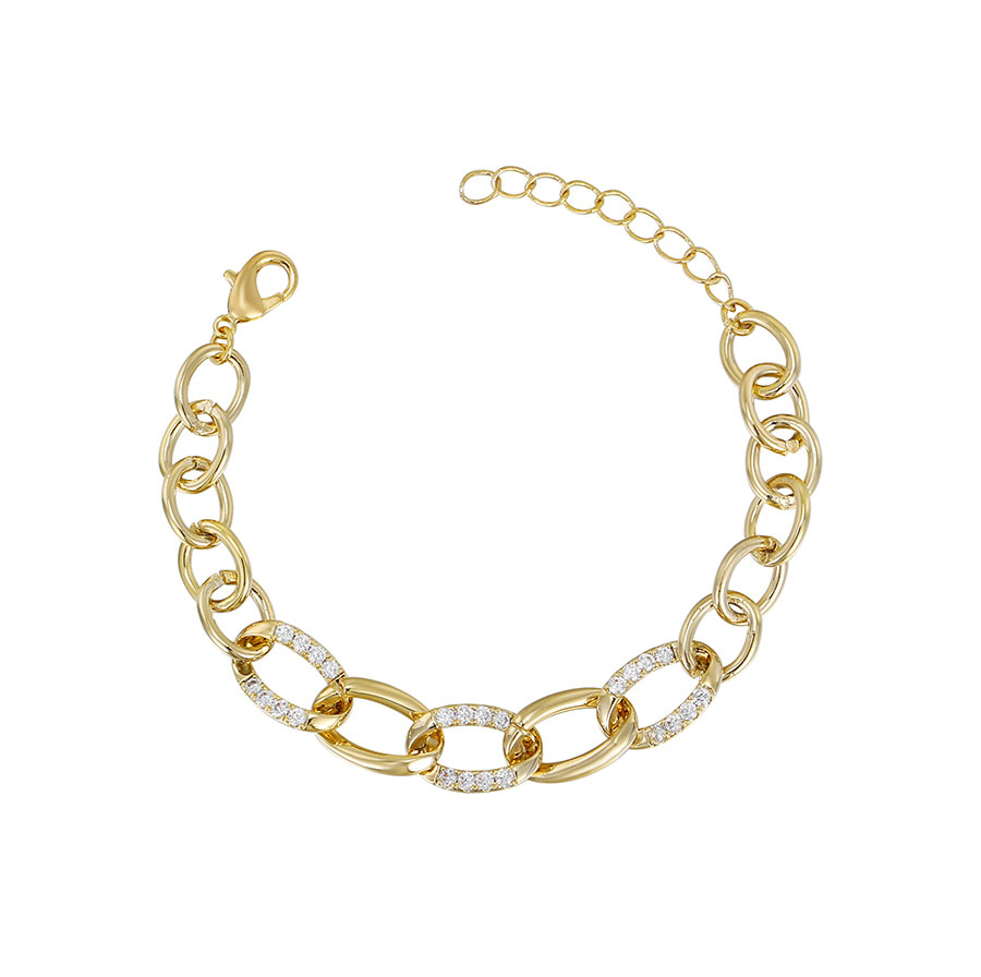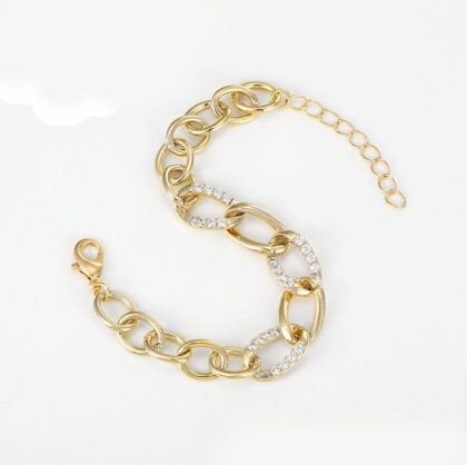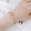 Bratara dama eleganta placata aur 18K este o bijuterie elegantă și rafinată, potrivită pentru a fi purtată în orice ocazie specială sau pentru a completa cu stil ținutele de zi cu zi. Aceasta este realizată dintr-un amestec de aliaje comune, acoperit cu un strat subțire de aur. Datorită finisajului placat cu aur, brățara capătă un aspect luxos și strălucitor asemănător aurului veritabil.
