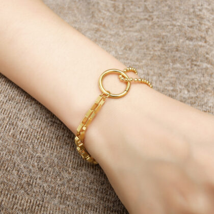 Este recomandat să eviți expunerea brățării la substanțe chimice agresive, precum parfumuri sau produse de curățat, deoarece acestea pot afecta strălucirea și durabilitatea placării cu aur.