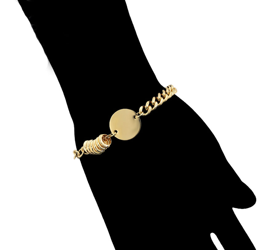 Aceasta este confecționată din metale comune acoperite cu un strat subțire de aur. Placarea cu aur conferă brățării un aspect luxos, similar celui al unei bijuterii din aur masiv.