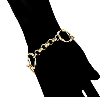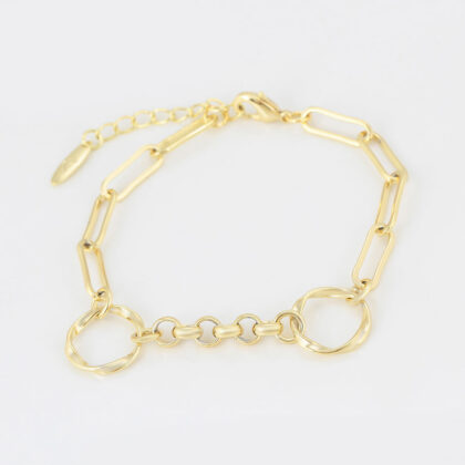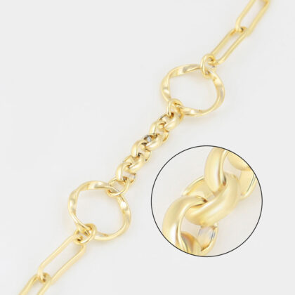Bratara dama placata aur Anastasia este un accesoriu ce emană rafinament și strălucire subtilă. Zalele elegante, rafinate și bine proporționate, adaugă un strop de subtilitate și eleganță brățării, accentuând strălucirea și completând ansamblul cu grație.  Un accesoriu versatil, perfect pentru a fi purtat cu mândrie într-o varietate de ocazii, de la evenimente speciale la întâlniri informale.