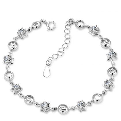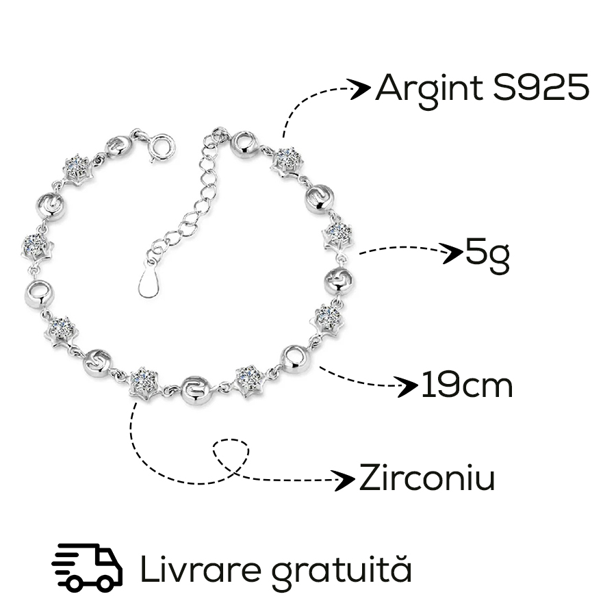 Bratara deosebita din argint 925 cu zirconiu se potriveste atat stilului casual, de vacanta cat si celui de zi cu zi. Brățara este încrustată cu pietre strălucitoare din zirconiu, care adaugă un strop de strălucire și eleganță bijuteriei. Aceste pietre pot imita aspectul diamantelor și oferă o notă de lux și frumusețe brățării.
