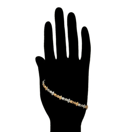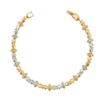 Bratara deosebita placata aur multicolor este o bijuterie elegantă și rafinată, potrivită pentru a fi purtată în orice ocazie specială sau pentru a completa cu stil ținutele de zi cu zi. Aceasta este realizată dintr-un amestec de aliaje comune, acoperit cu un strat subțire de aur. Datorită finisajului placat cu aur, brățara capătă un aspect luxos și strălucitor asemănător aurului veritabil.