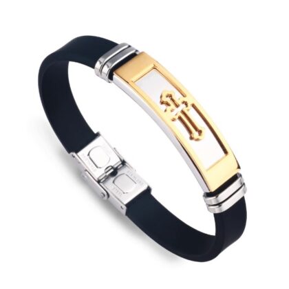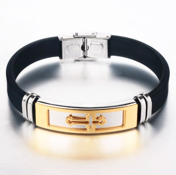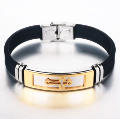 Bratara din silicon amuleta cruce aurie este o bijuterie simplă, dar plină de semnificație spirituală. Materialul principal al brățării este siliconul, cunoscut pentru durabilitatea și rezistența sa. Este un material flexibil, care face brățara confortabilă la purtat. Amuleta care este din otel inoxidabil, are o cruce, un simbol religios și spiritual cu semnificații adânci.