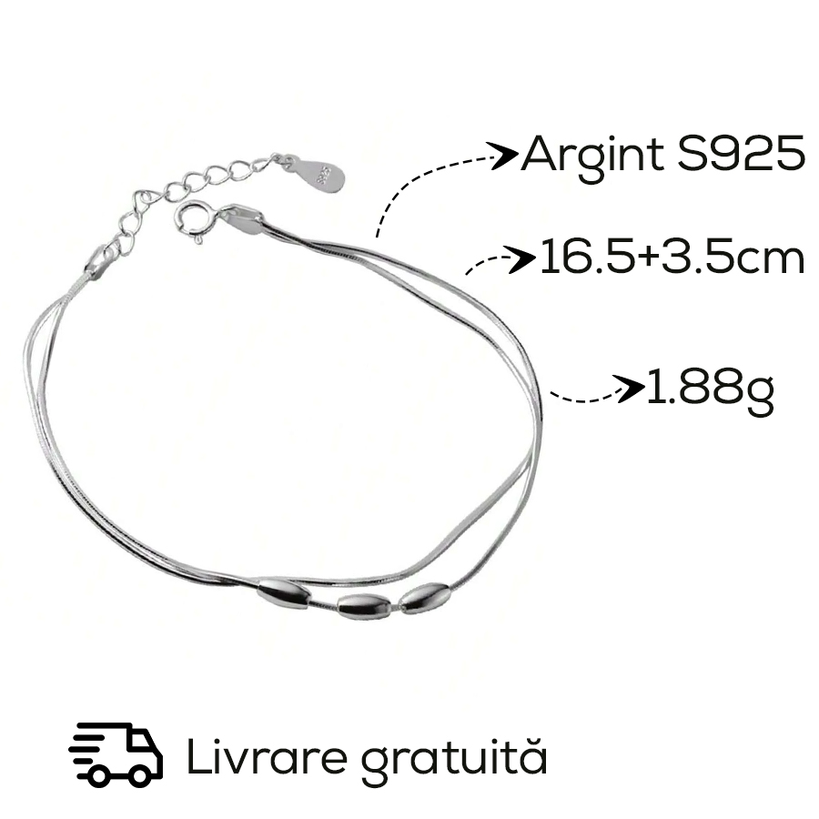 Această brățară dublă din argint combină cu succes un design clasic și deosebit cu strălucirea pură a argintului. Cu această bijuterie, vei aduce o notă de eleganță în garderoba ta și vei străluci la orice ocazie.