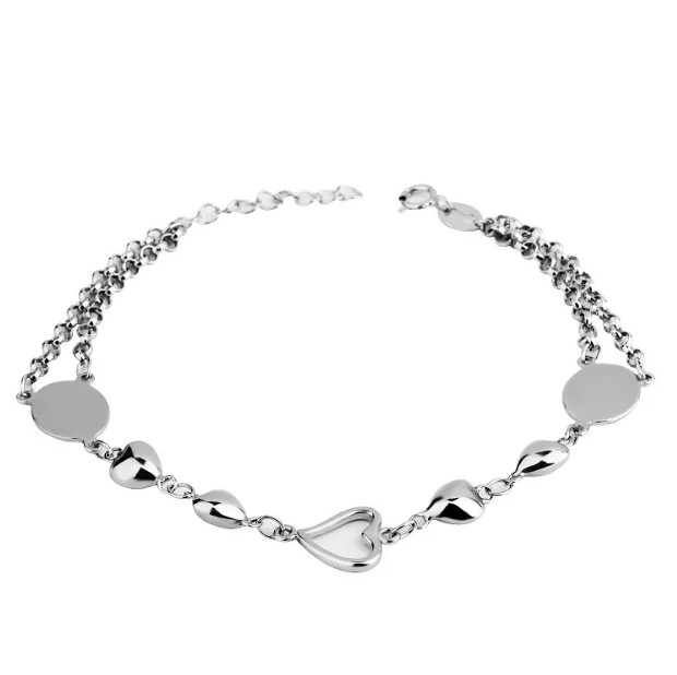 Bratara dubla argint 925 inimioare este o bijuterie delicata, un exemplu perfect de eleganță și simplitate în lumea bijuteriilor. Din argint fin și rafinat, această brățară adaugă un touch subtil de frumusețe oricărei ținute.