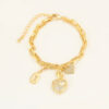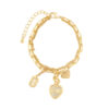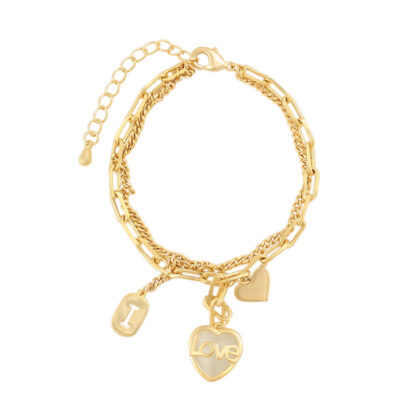 Bratara eleganta Love placata aur este o bijuterie elegantă și rafinată, potrivită pentru a fi purtată în orice ocazie specială sau pentru a completa cu stil ținutele de zi cu zi. Aceasta este realizată dintr-un amestec de aliaje comune, acoperit cu un strat subțire de aur. Datorită finisajului placat cu aur, brățara capătă un aspect luxos și strălucitor asemănător aurului veritabil.