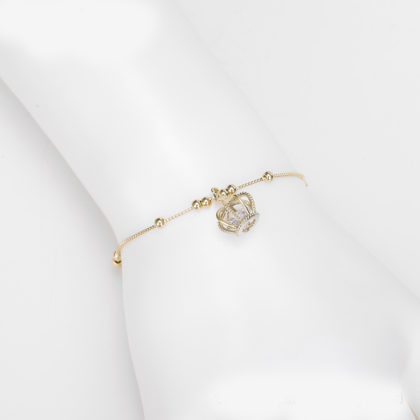 Această brățară cu coronita placată cu aur este o alegere populară pentru că este versatilă și poate fi purtată singură pentru un efect minimalist și subtil, sau poate fi combinată cu alte bijuterii pentru un aspect mai îndrăzneț și sofisticat. Rețineți că, din moment ce este placată cu aur și nu este din aur masiv, aceasta necesită o îngrijire delicată pentru a păstra strălucirea și aspectul său frumos pe termen lung. Este recomandat să se evite contactul cu substanțe chimice agresive sau să se păstreze într-un loc uscat și sigur atunci când nu este purtată.