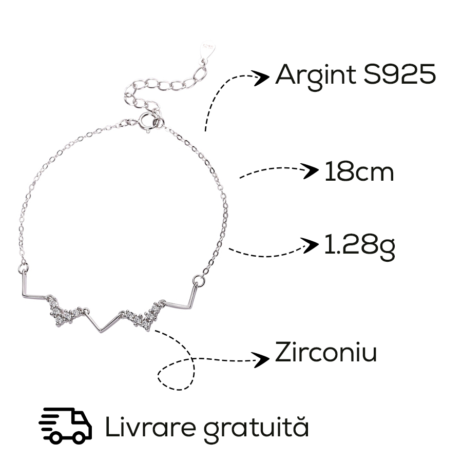 Bratara eleganta zirconiu din argint 925 este o bijuterie deosebită și strălucitoare, care emană eleganță și rafinament. Pietricelele din zirconiu adaugă bijuteriei o notă subtilă de strălucire și lux.