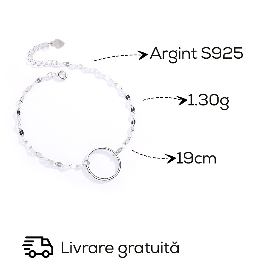 Bratara finuta argint 925 Rebeca este o bijuterie subtilă și elegantă, care emană rafinament și simplitate. Cercul din argint este un simbol atemporal al unității și eternității, sugerând un sentiment de completare și continuitate. Această simplitate adaugă bijuteriei un farmec subtil, fără să-i detracteze de la eleganța sa generală.