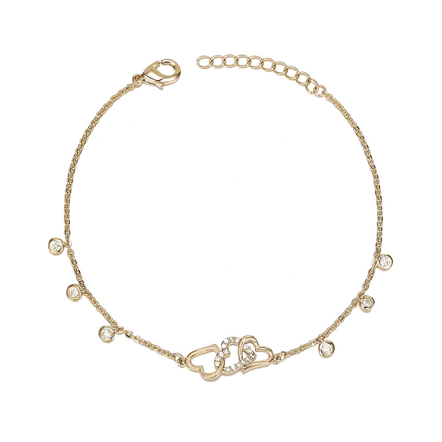 Bratara finuta inimioare placata aur este un simbol puternic al iubirii și legăturii speciale dintre două suflete. Cele două inimioare delicate, magistral unite, formează o bijuterie incitantă, ce strălucește subtil și emană căldură în orice moment. Un sentiment de căldură și tandrețe învăluie încheietura mâinii, aducând o notă de strălucire și luminozitate.