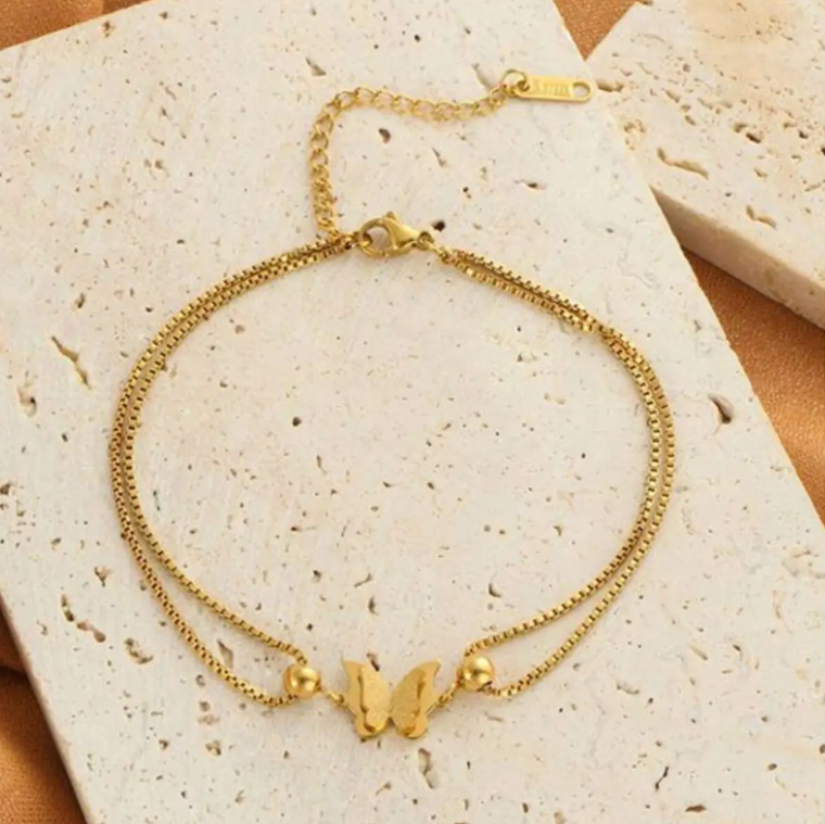 Bratara glezna placata aur fluturas este o bijuterie elegantă și rafinată, potrivită pentru a fi purtată în orice ocazie specială sau pentru a completa cu stil ținutele de zi cu zi. Aceasta este realizată dintr-un aliaj metalic, acoperit cu un strat subțire de aur. Datorită finisajului placat cu aur, brățara capătă un aspect luxos și strălucitor asemănător aurului veritabil.