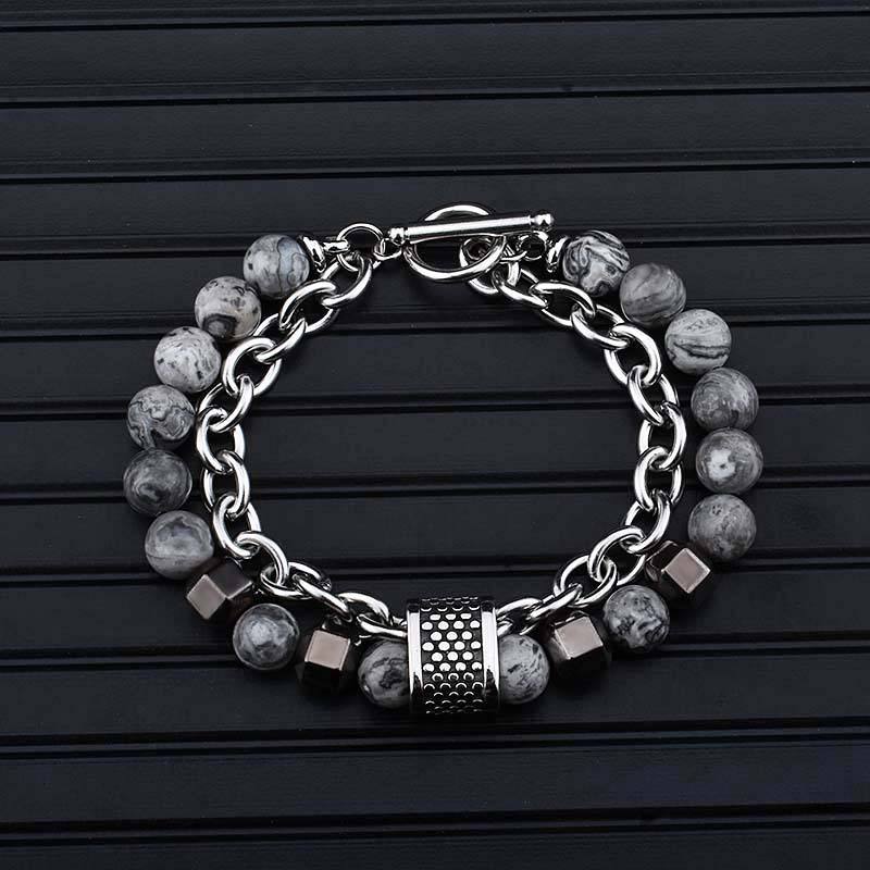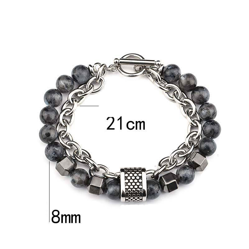 Ea este compusa dintr-un strat format din margele din pietre de hematit si otel inoxidabil.