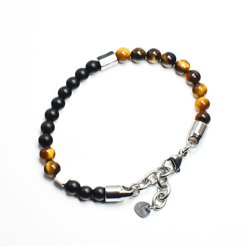 Oțelul inoxidabil, cu proprietățile sale durabile și rezistente la coroziune, este folosit pentru a crea elementele de legătură și de fixare ale brățării. Acesta adaugă un aspect modern și sofisticat, contrapunctând frumusețea rustică a pietrelor naturale.