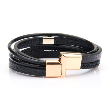 Confecționată din mai multe straturi de piele de calitate superioară, această brățară este un simbol al durabilității și rezistenței. Fiecare strat de piele este atent selectat și prelucrat pentru a asigura o textură plăcută la atingere și o finisare netedă. Prin îmbinarea acestor straturi, se obține un design complex și interesant.