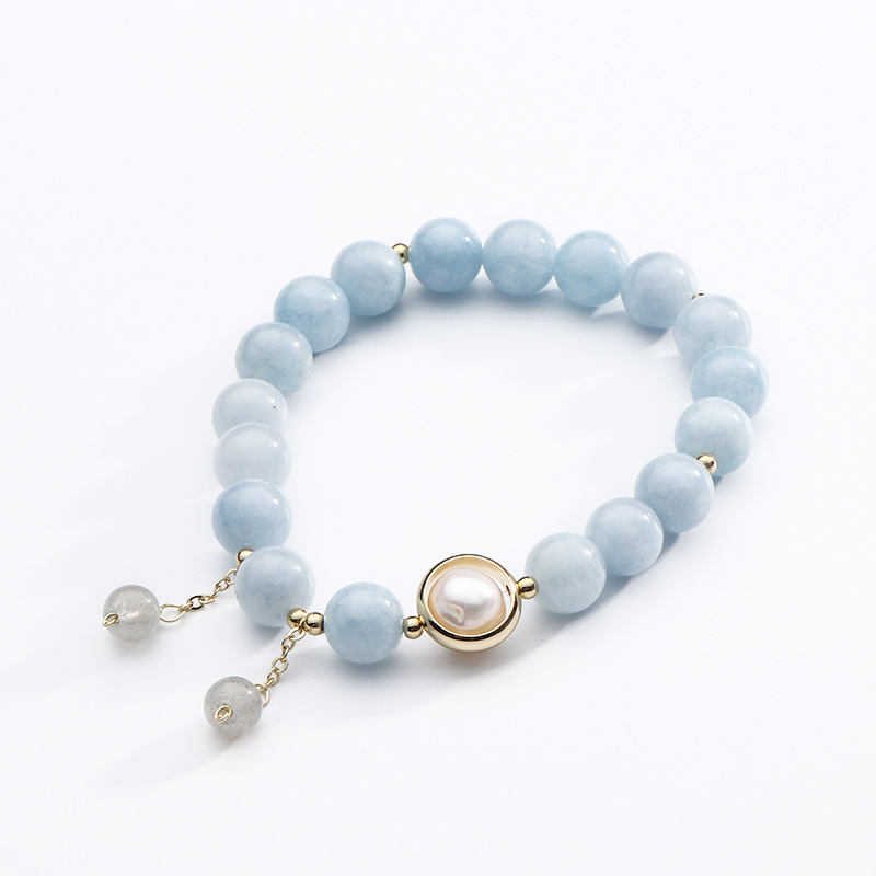 Perla, fiind un simbol al feminității și al eleganței, este plasată în centrul designului brățării. Acest element distinctiv emană o aură de grație și rafinament și oferă un contrast subtil cu strălucirea pietricicelor.