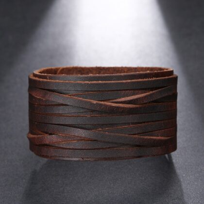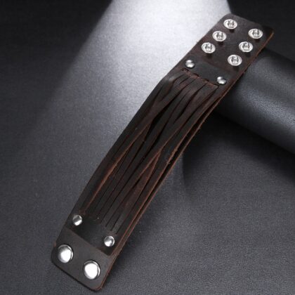 Bratara model lat din piele maro este o reprezentare clasică a stilului și robusteții. Lățimea generoasă a brățării adaugă un aspect puternic și marcant. Pielea maro emană o senzație de autenticitate și rafinament.
