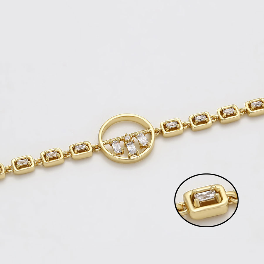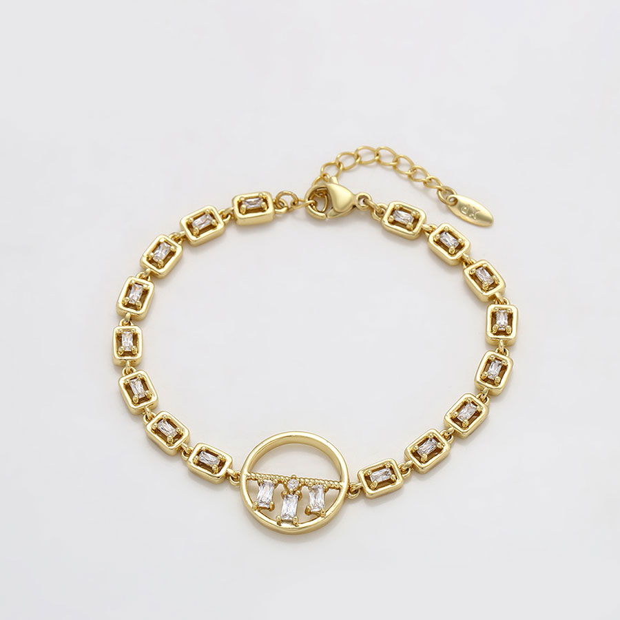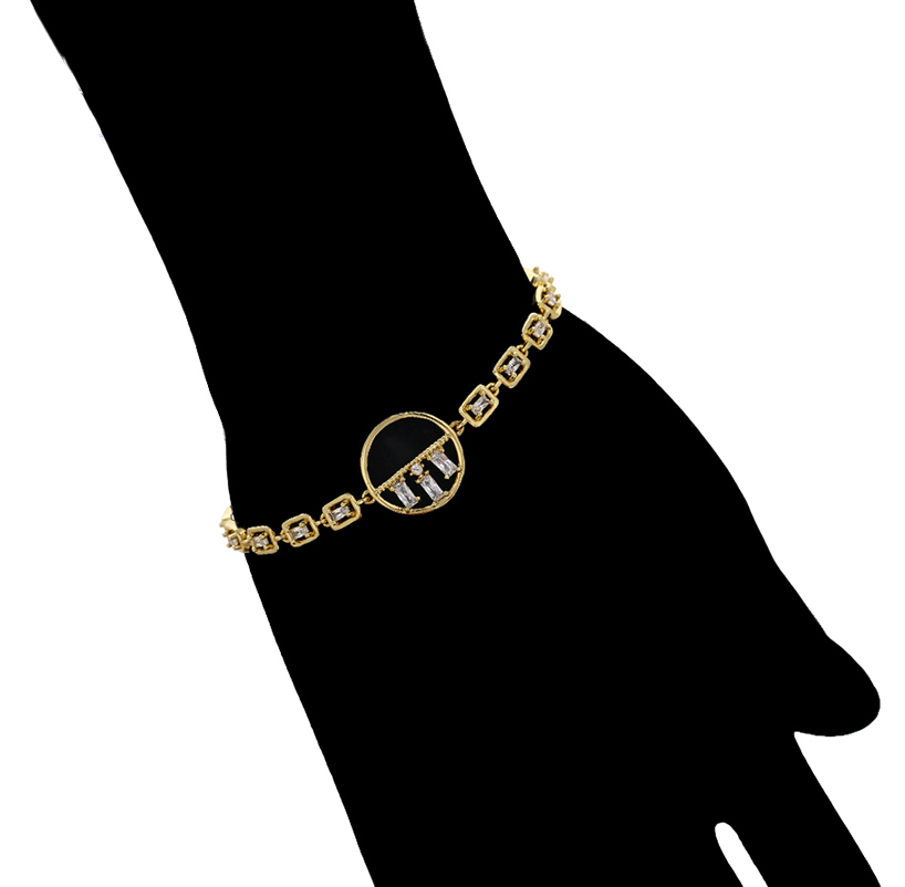Designul modern face din această brățară un accesoriu versatil, potrivit pentru a completa atât ținutele de zi, cât și pe cele de seară. Transformă-ți stilul cu această brățară modernă placată cu aur și decorată cu cristale – un accesoriu esențial pentru orice iubitor de bijuterii contemporane.