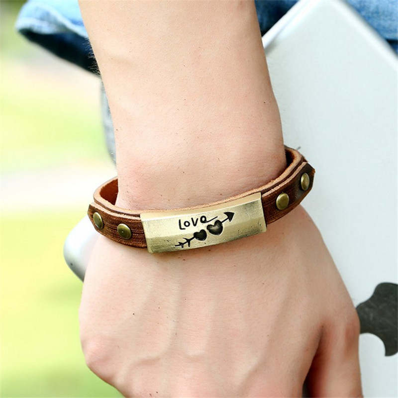 Bratara Love este confecționată din piele de culoare maro, conferindu-i un aspect rustic și elegant în același timp. Plăcuța centrală este gravată cu cuvântul „love”, amplasată în centru pentru a atrage atenția asupra mesajului său puternic. Sistemul de închidere al brățării este similar cu cel al unei curele, oferind siguranță și ușurință în utilizare. Această brățară este un accesoriu perfect pentru a sublinia un stil casual sau boem, adăugând un strop de romantism și căldură oricărei ținute.