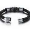 Bratara piele neagra impletita insertii otel inoxidabil este un accesoriu elegant și robust. Brățara este confecționată din piele ecologica neagră , care oferă un aspect elegant și durabil.